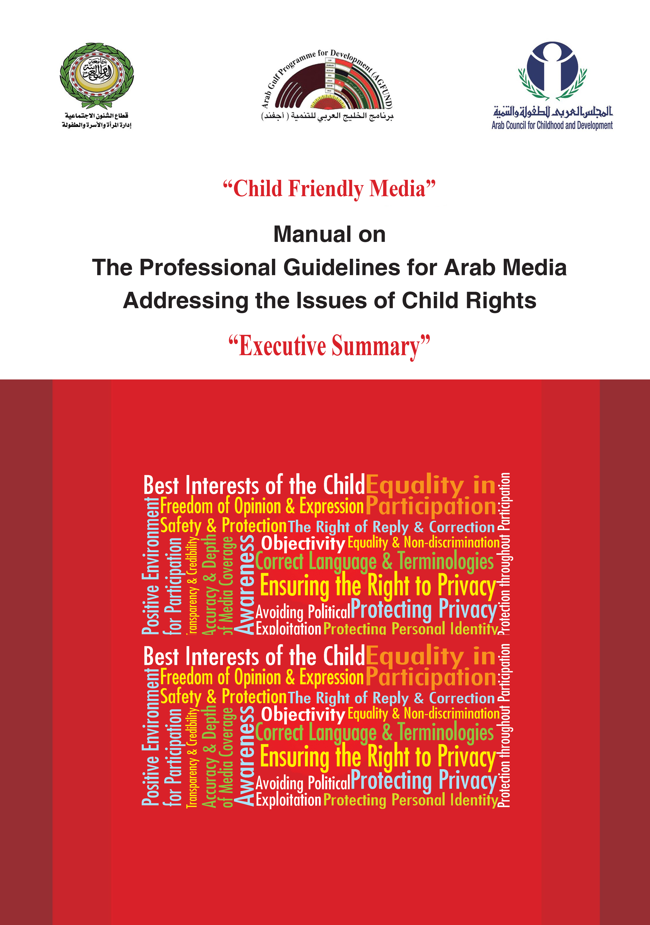 The Document of the Professional Guidelines has been adopted by the Council of Arab Ministers of Social Affairs in December 2016, as well as by the Council of Arab Information Ministers in July 2017. It has been considered as a guiding document for the media when addressing child rights issues in the Arab region and included within the accredited media codes of honor.
